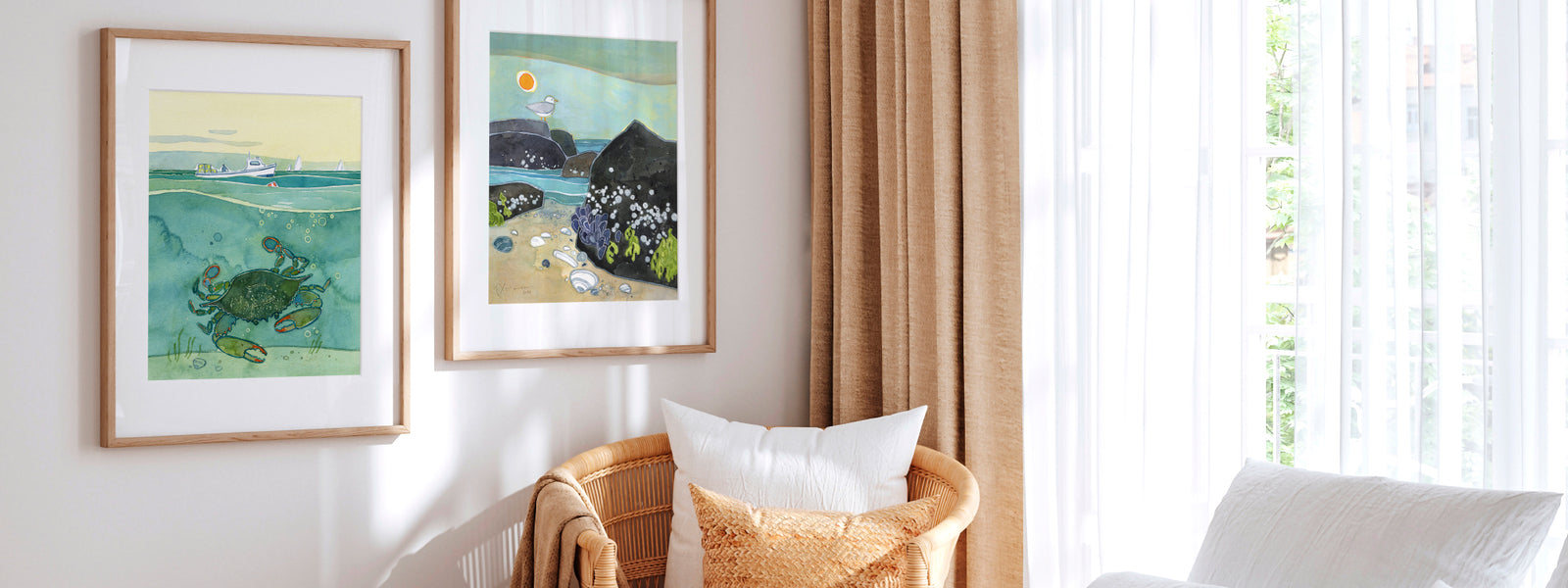 Blue Crabs Watercolor Painting Print, Coastal Beach Art, Seaside Decor, Maryland Blue Crab